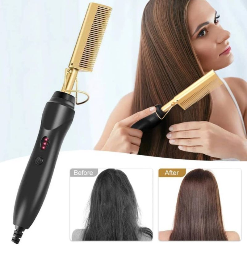 Gold Heated Hot Comb Electric Hot Straightening Heat Pressing Comb Curling Flat Curler Hair Straightener For Natural Hair Green