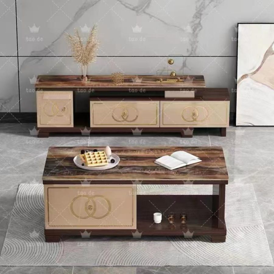 Light luxury style marble TV cabinet coffee table combination modern minimalist living room size apartment stainless steel floor