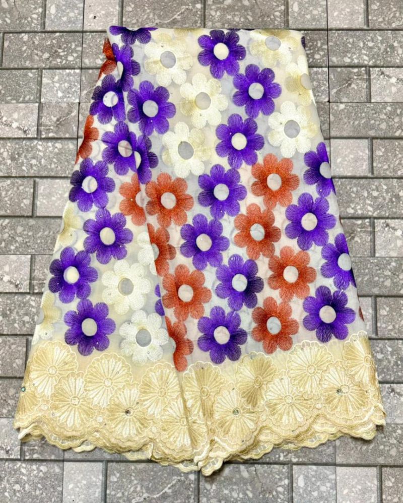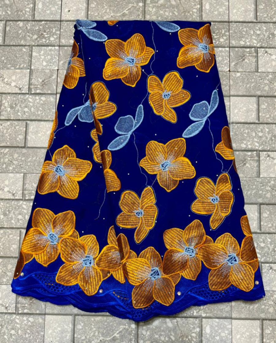 Swiss Lace Fabric 2023 High Quality 5Yards African Cotton Lace Fabric with Stones for Sewing Evening Party Dresses