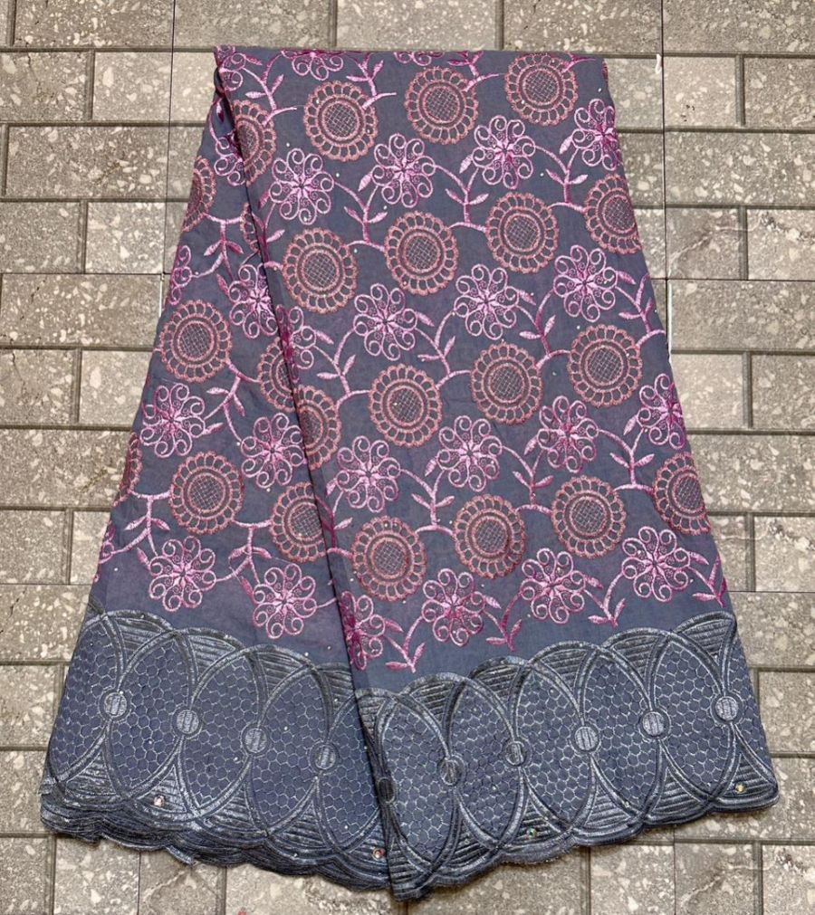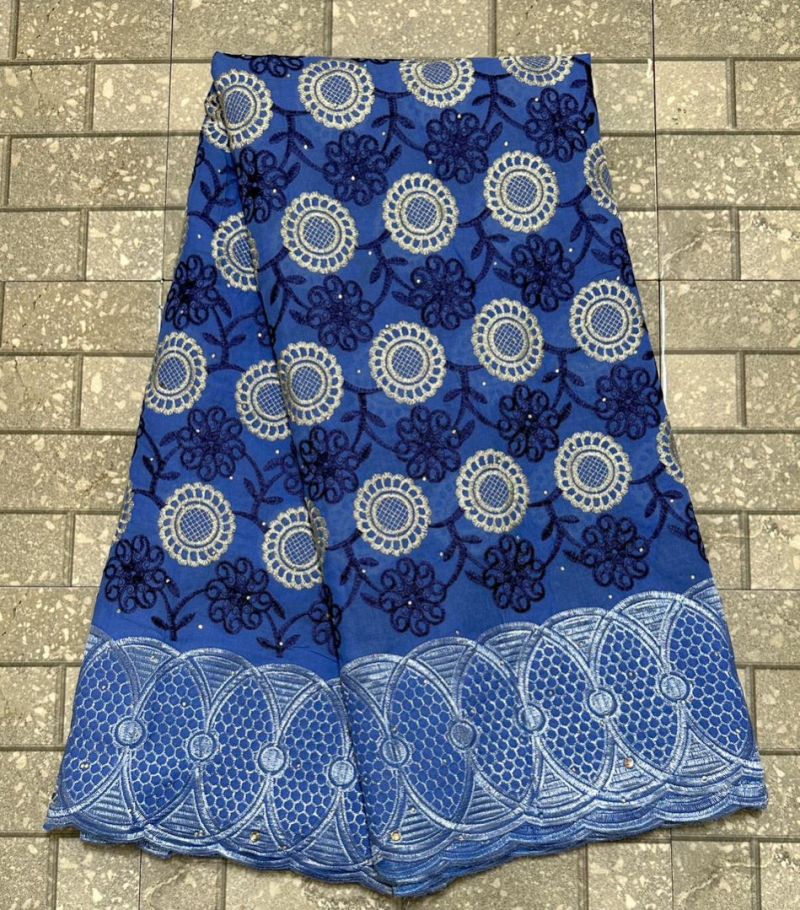 Swiss Lace Fabric 2023 High Quality 5Yards African Cotton Lace Fabric with Stones for Sewing Evening Party Dresses