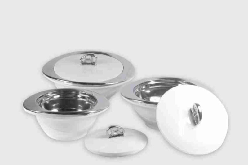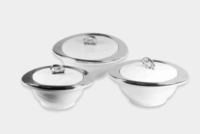 Big plastic oriental chrome insulated all types of serving bowls with lid for kitchen dining tableware pack of 3 serve casserole set (6000ml)