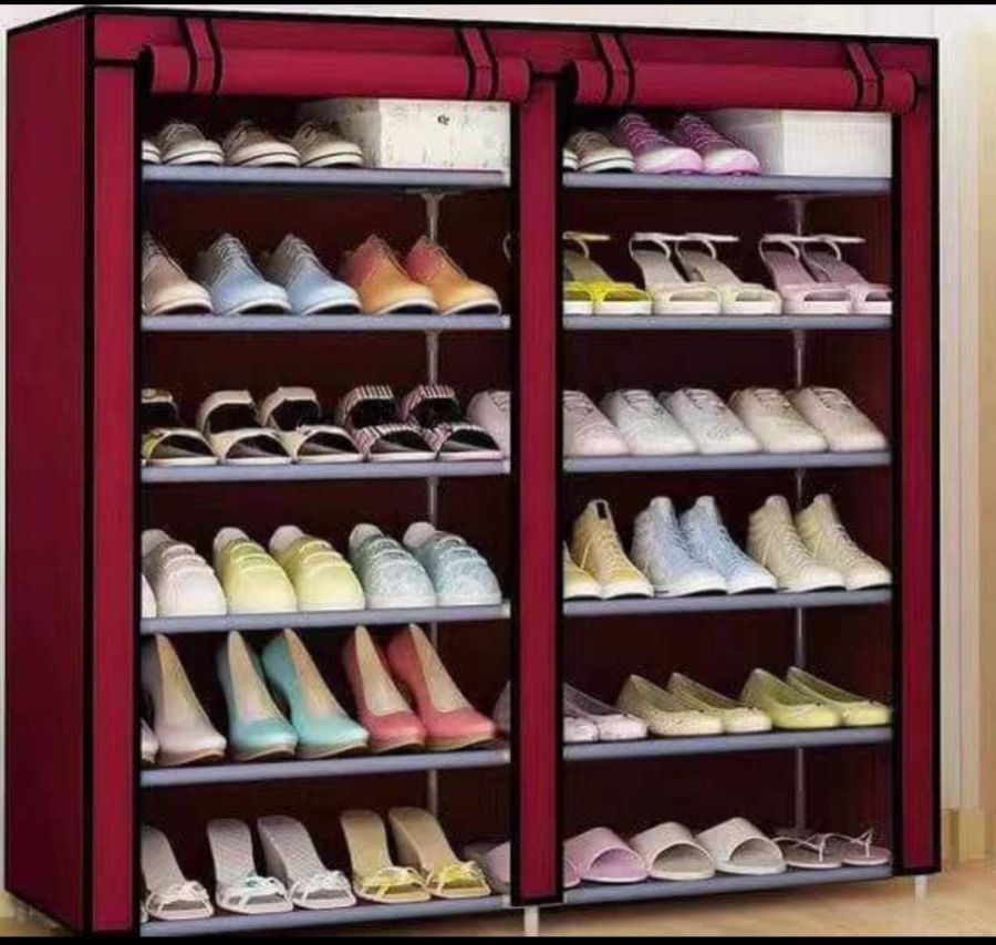 This modern shoe rack beautifies your room to the modern standard and also helps to create space. It is a must have if you want the modernise way of arranging your room. The use of environmentally friendly steel .The use of peace of mind without odor.It can storage many shoes with the rack