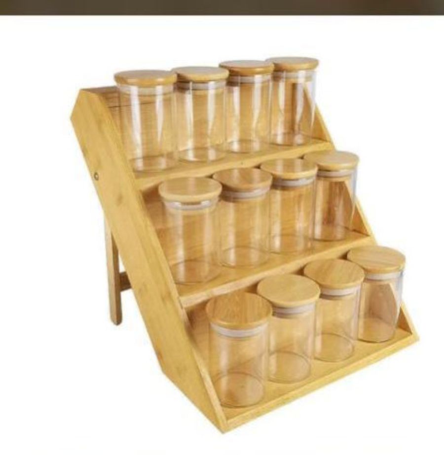 12 In 1 Spice Jars Bamboo Lid With Step Container Organizer