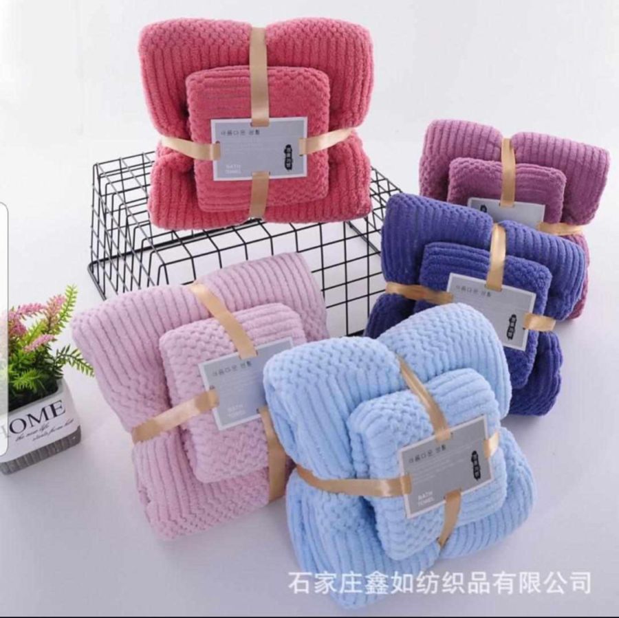 2 Piece Coral Fleece Bath Towel