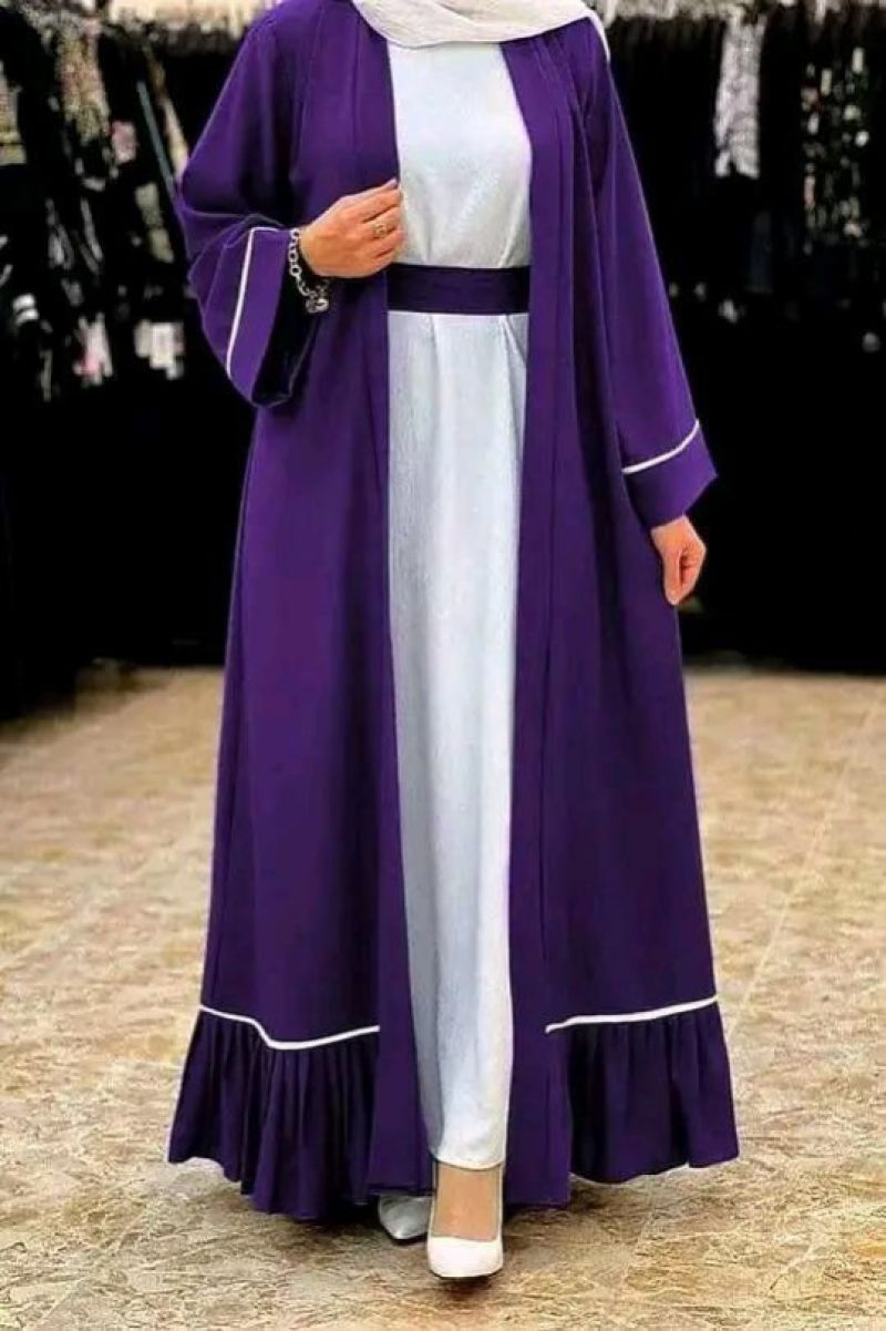New Open Abaya with Hijab for Muslim Women Elegant Splicing Solid Color Kimono Abayas Dubai Kaftan Robe Casual Islam Clothing