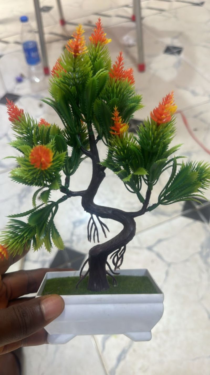 Artificial Potted Tree Bonsai Simulation Plant Home Decor Table Centerpieces-Orange + Green