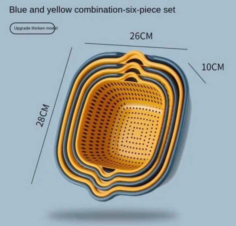 6-Piece Kitchen Multifunctional Drain Basket PP Material Household Fruit Vegetable Washing Basket Strainer Kitchen Storage Tools