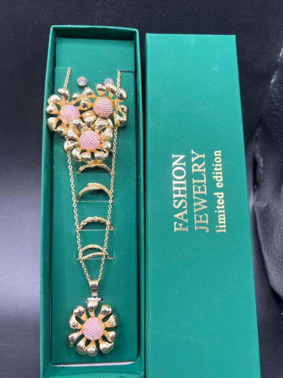 Gold Plated Earrings With Rings Dubai Nigerian Flower Ethiopian Wedding Jewelry Adjustable Ring For Women Gifts
