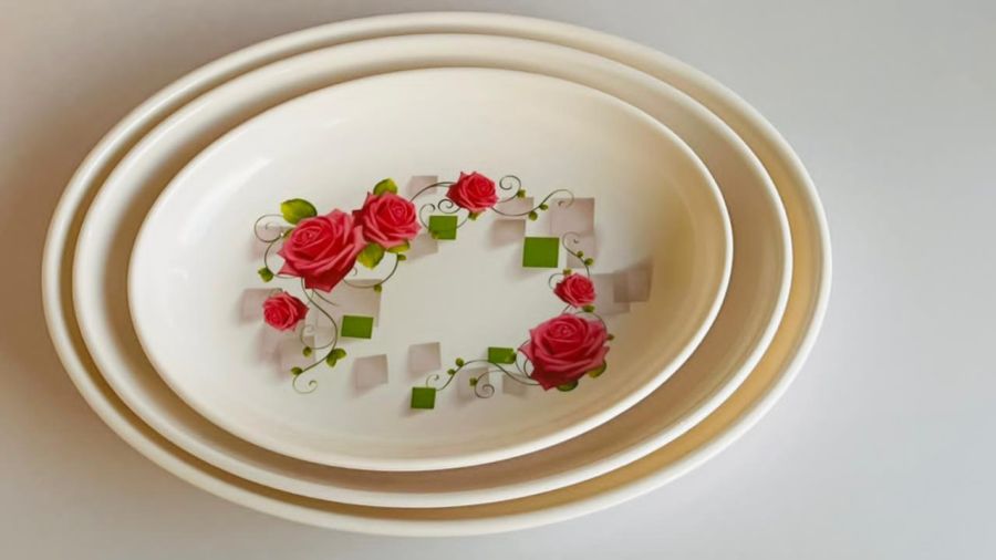 Jaypee Plastic Le Dinner Full Plate R Print Rose Red Set of 3 pcs