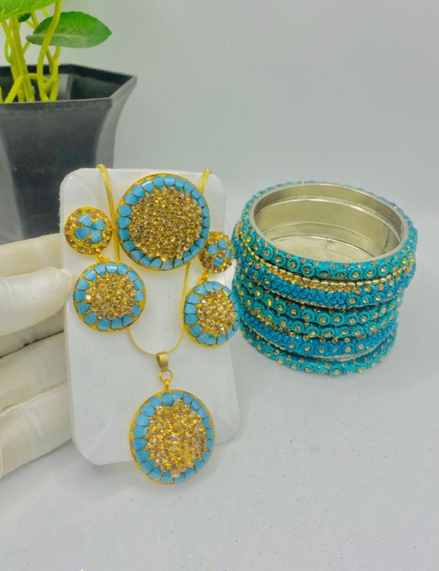 AILUOR Turkish Hamsa Evil Eye Jewelry Set with Sapphire Color's Cubic Zirconia