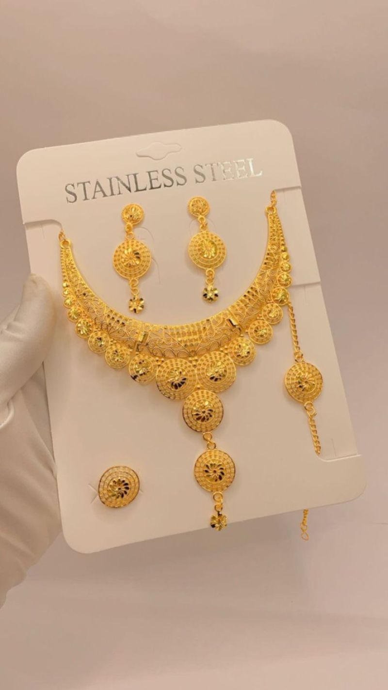 Dubai Gold Color Jewelry Sets Fashion Crystal Bridesmaid Indian Jewelry African bridal wedding gift Saudi Arab Jewelry Set