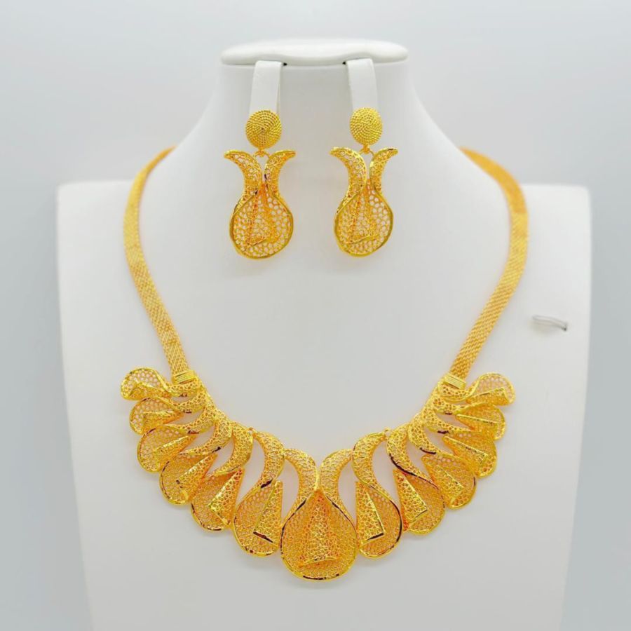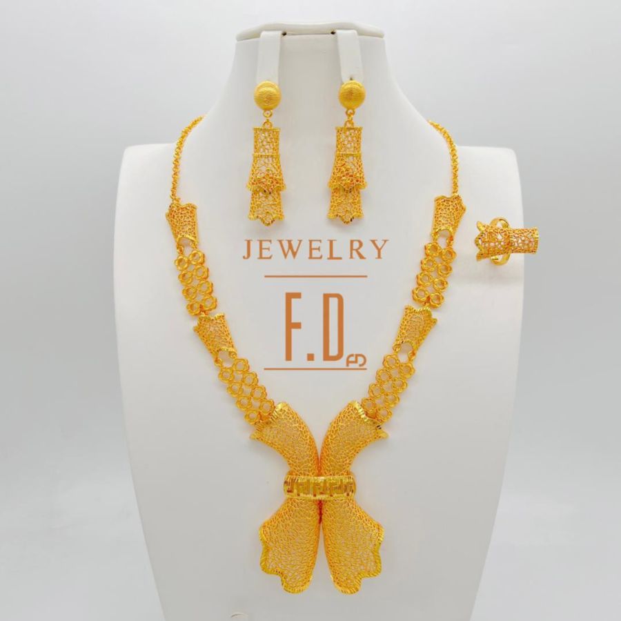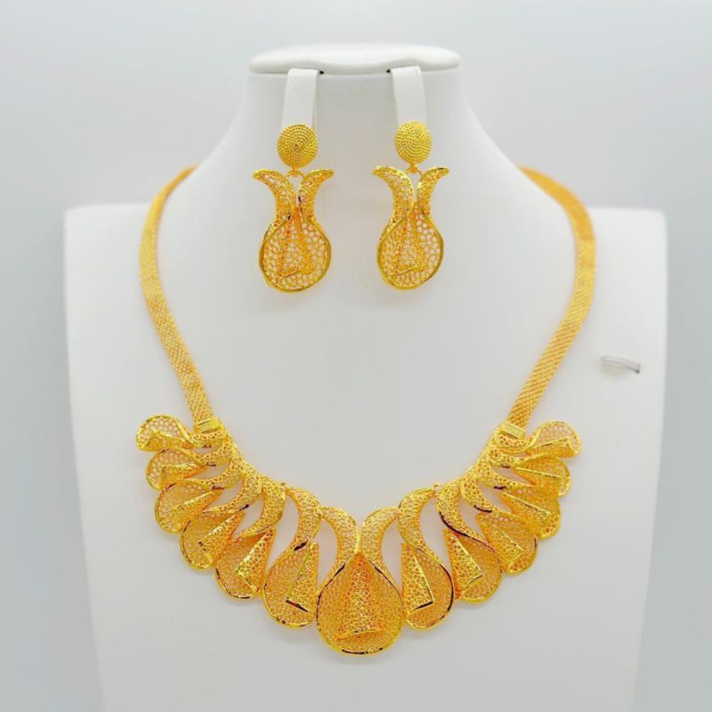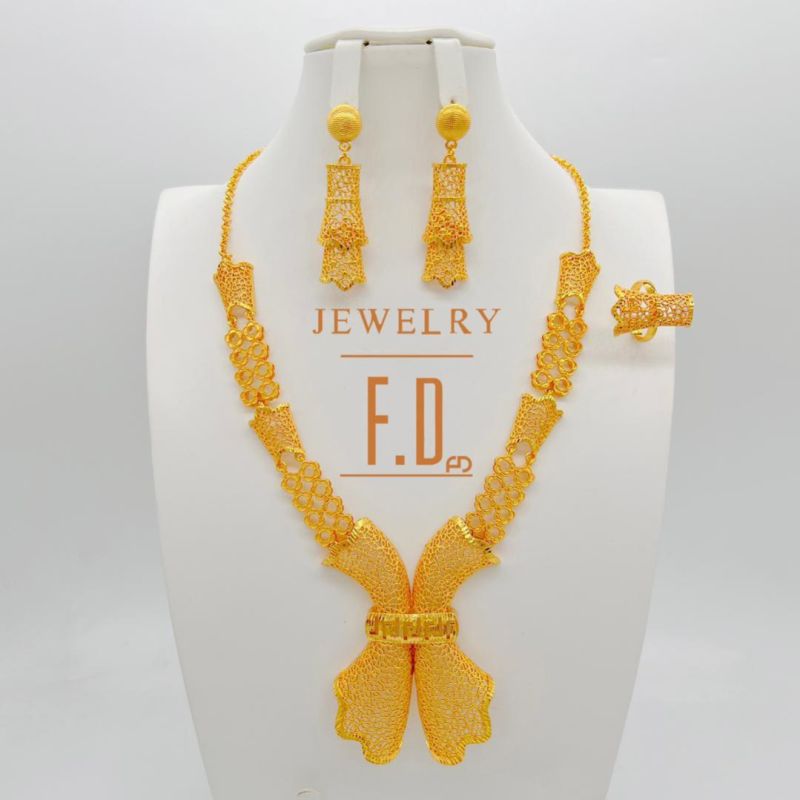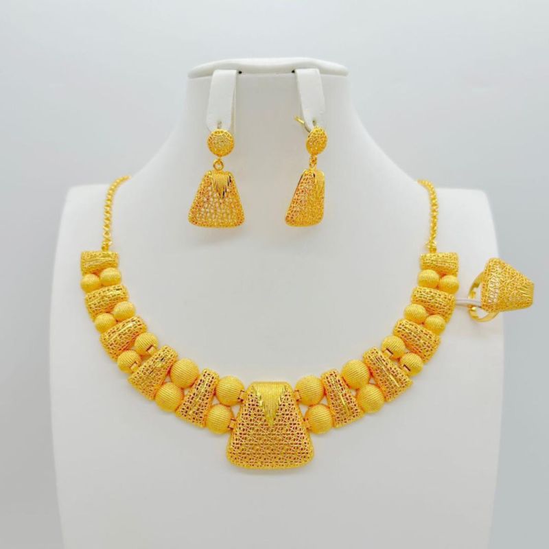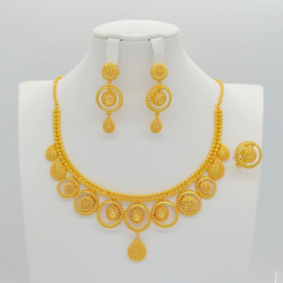 Indian Jewelry Set Gold Color Bridal Wedding Ethiopia Dubai Nigerian African Necklace Earrings Bracelet Ring Jewellery Set