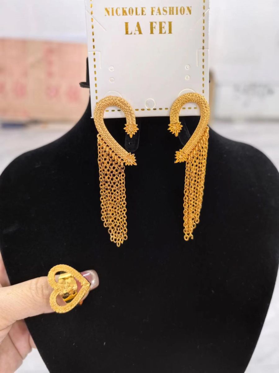 Gold Plated Earrings With Rings Dubai Nigerian Flower Ethiopian Wedding Jewelry Adjustable Ring For Women Gifts