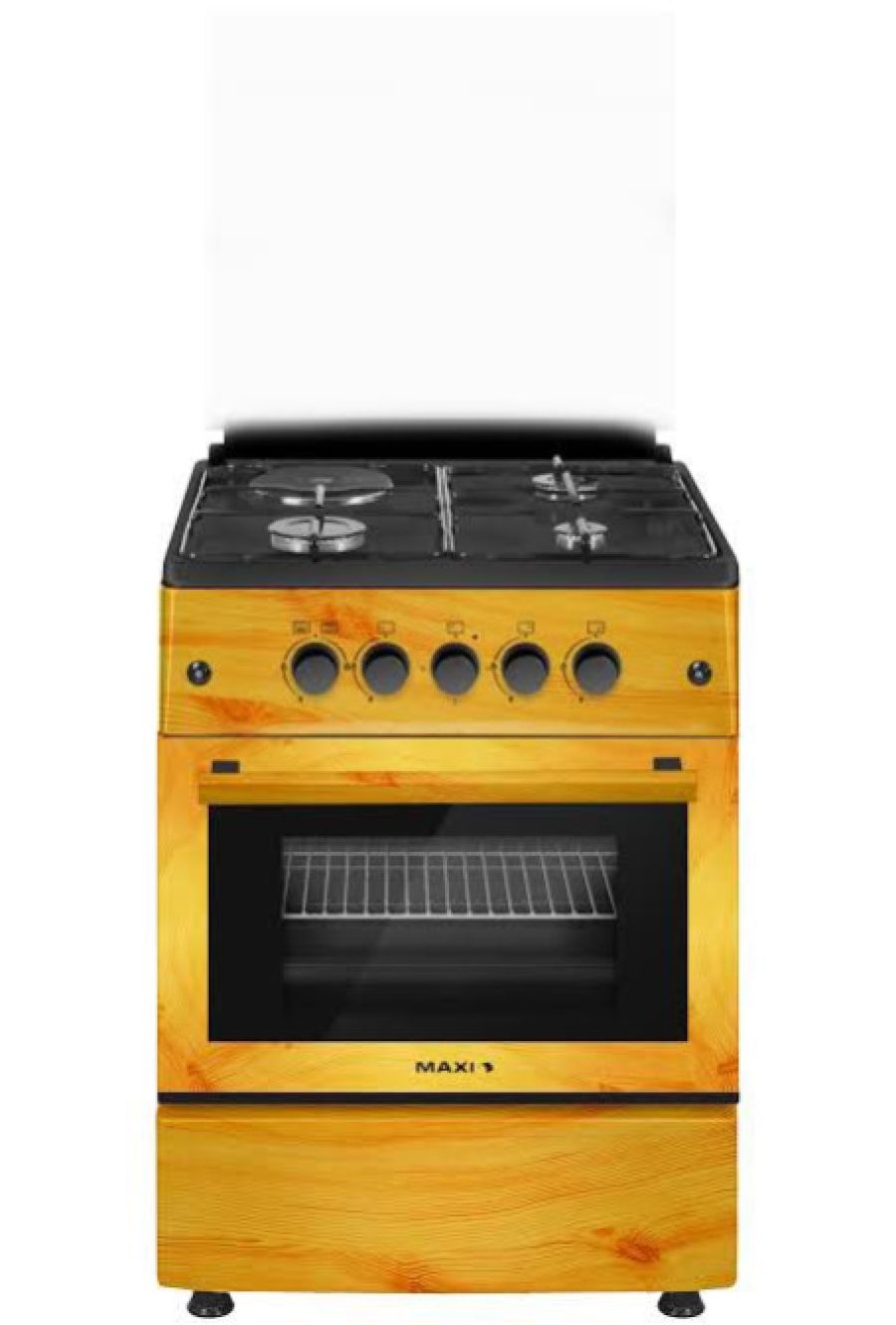 3 GAS & 1 ELECTRICAL, WOOD, GLASS, STAINLESS ,IGNITION BUTTON,OVEN LIGHT, OVEN BURNER UP &