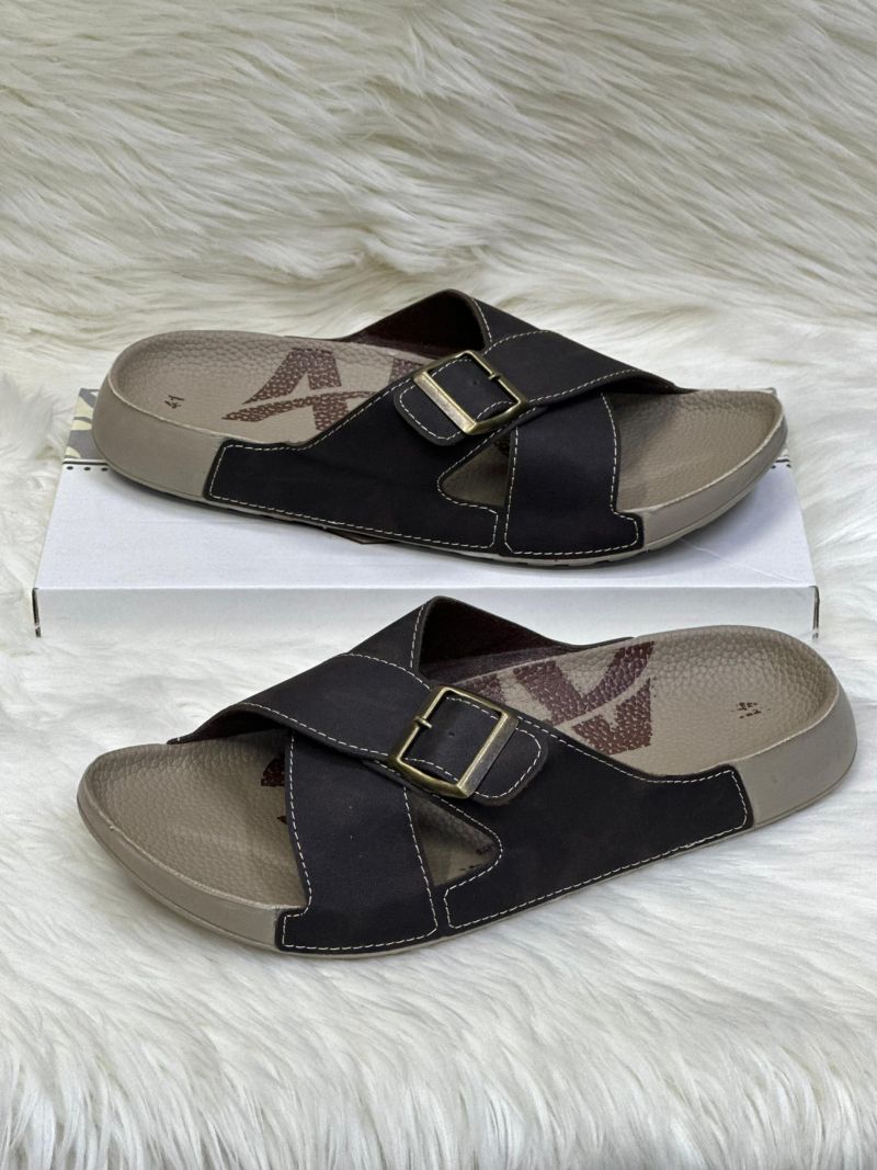 Men's Leather Sandals Summer Slippers Khaki