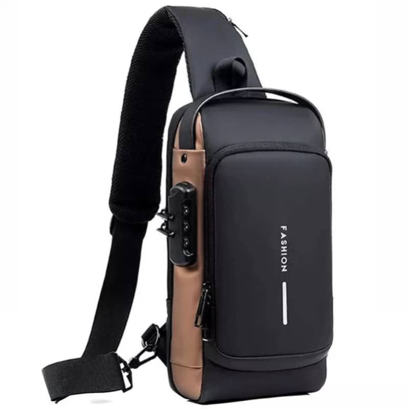WEIXIER X306 Men Shoulder Bag With USB Charging Port X306 Black Gold