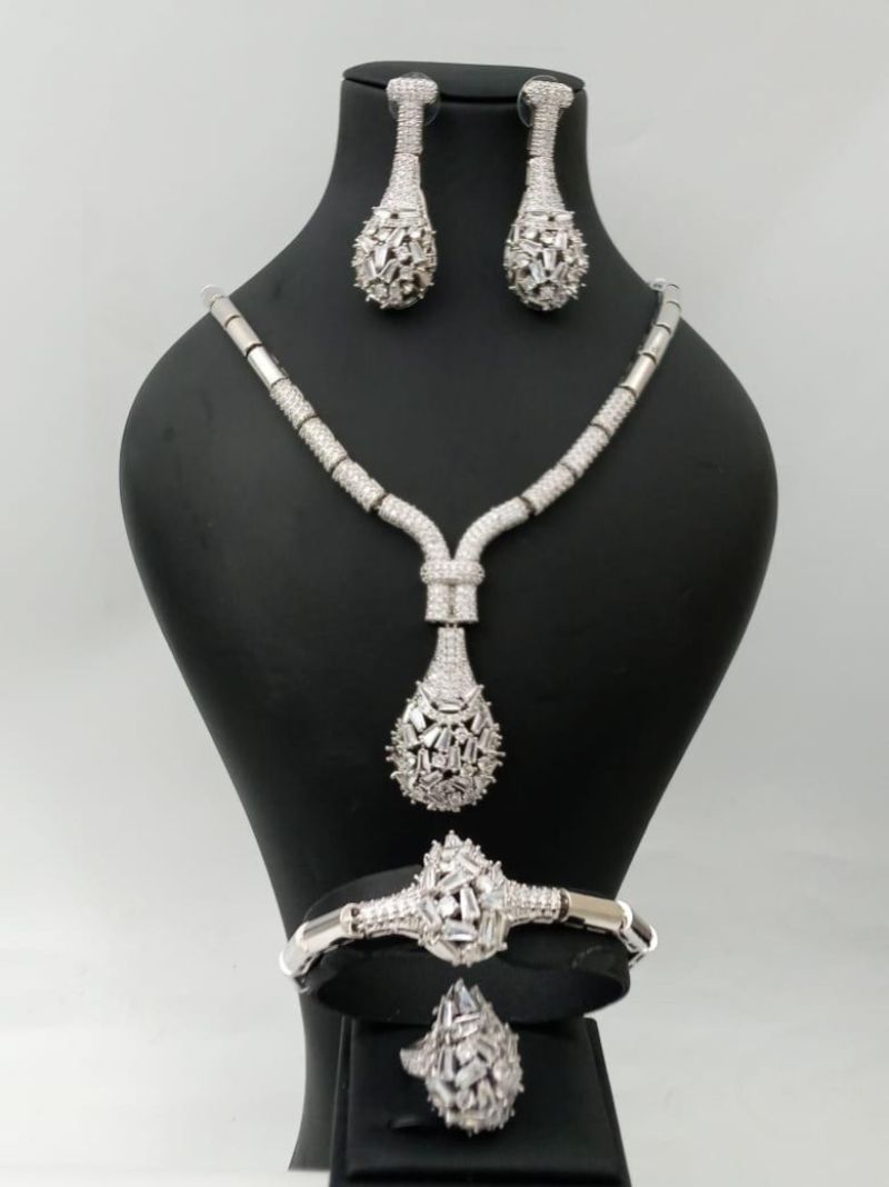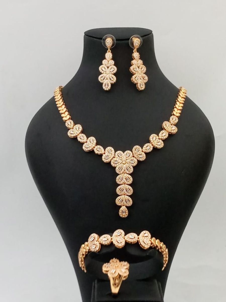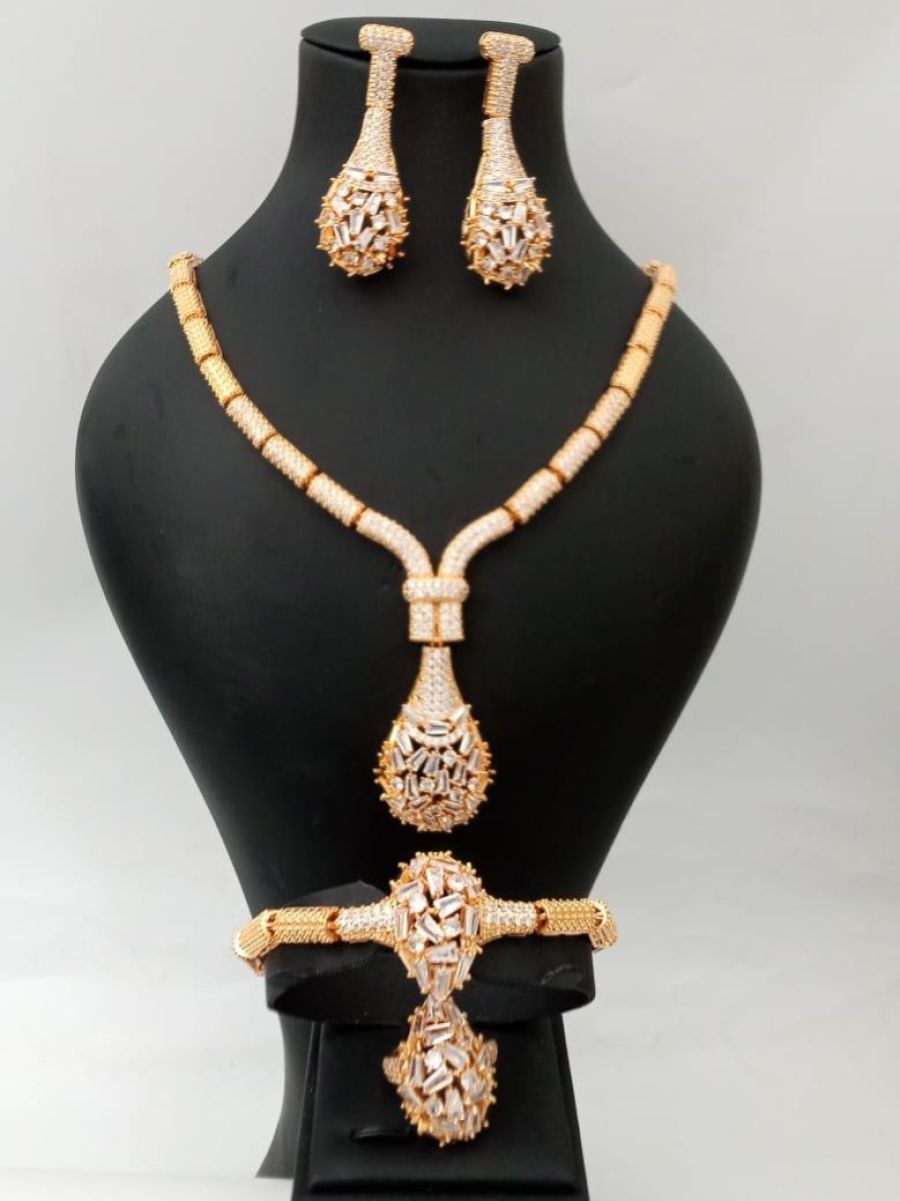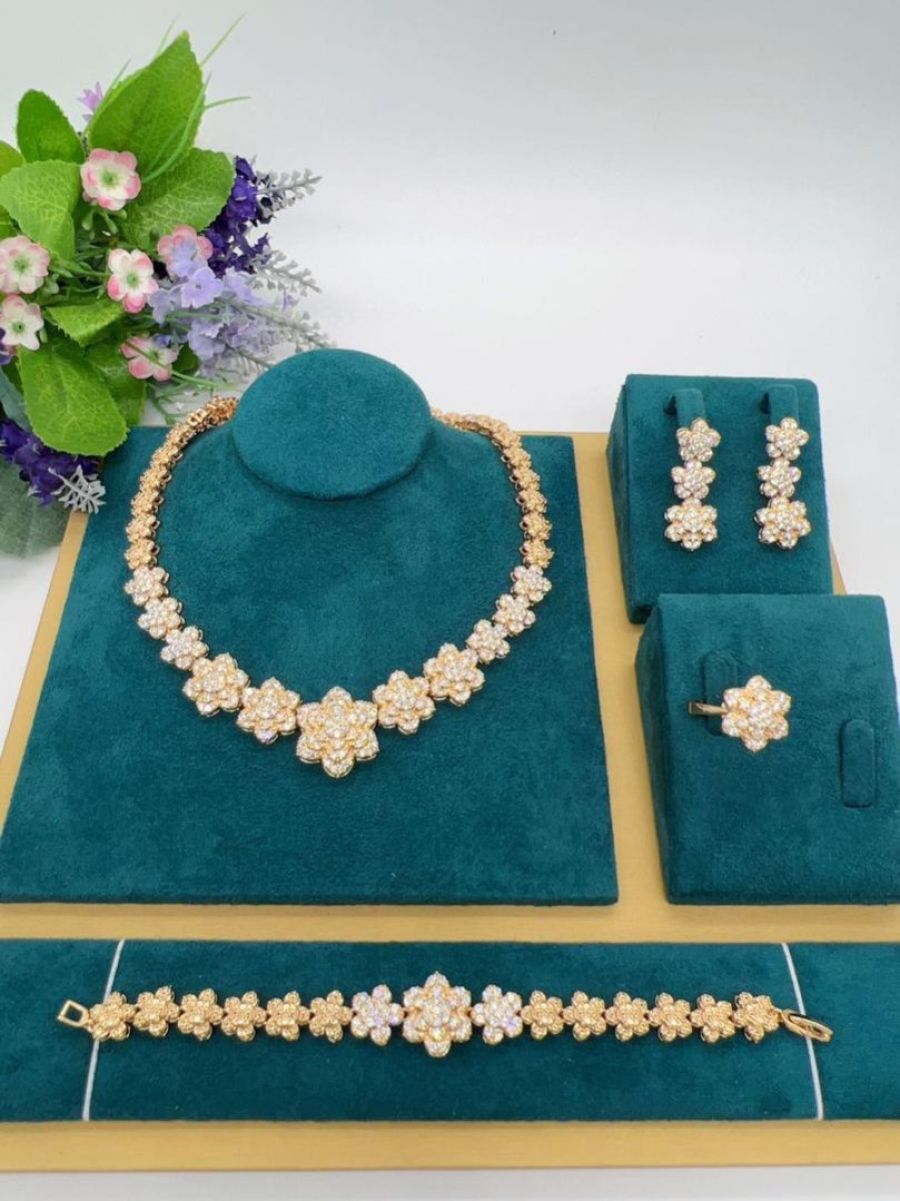 Zirconia Crystal Luxury Sets Diamond Gold Necklace,Earring ,Bracelet And Ring Set